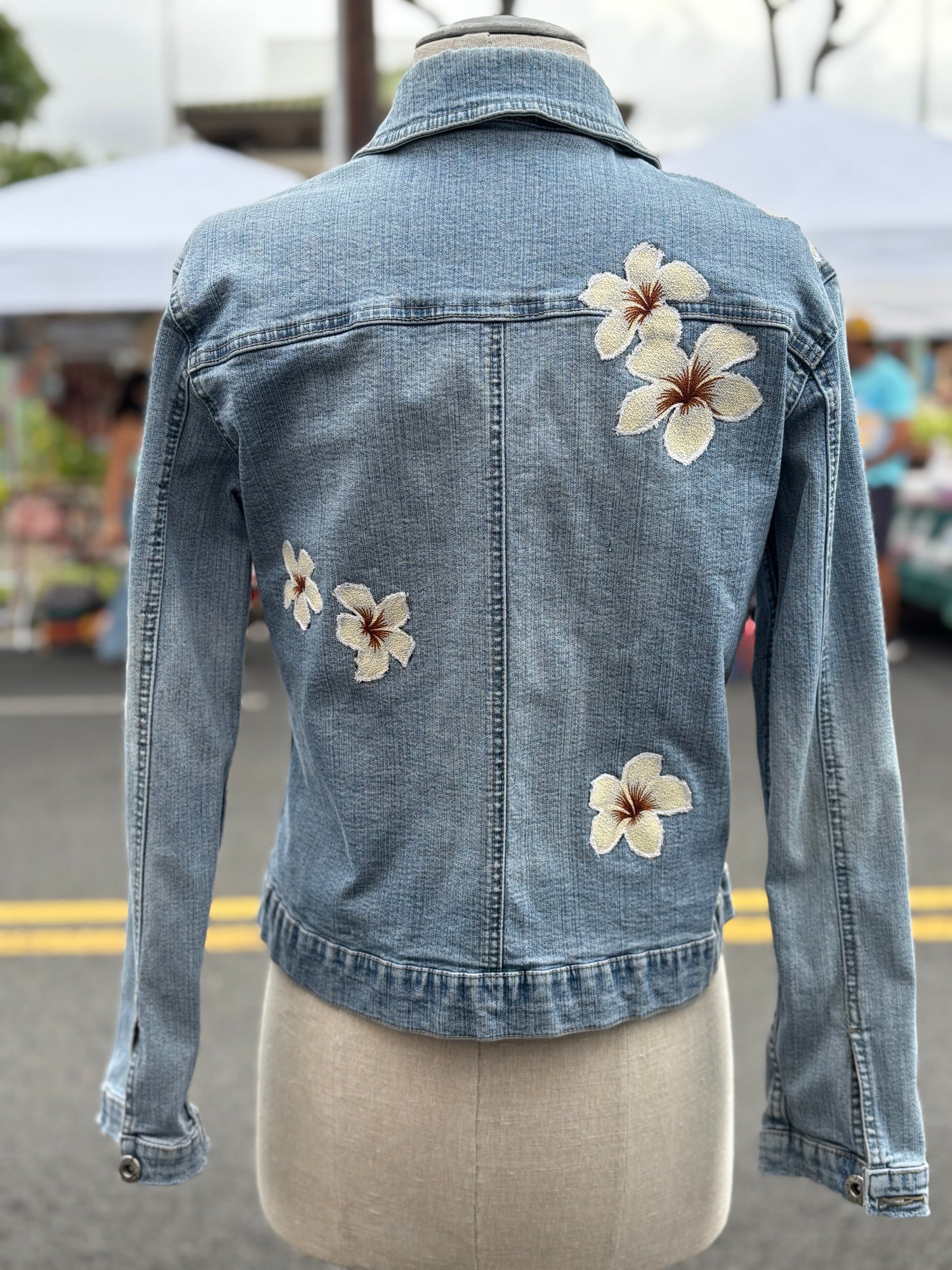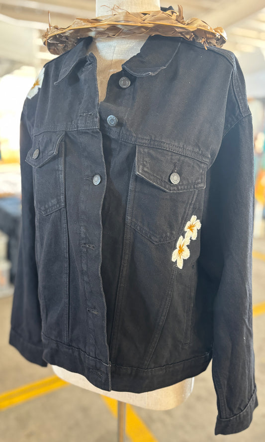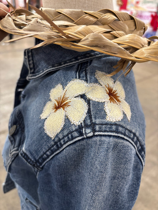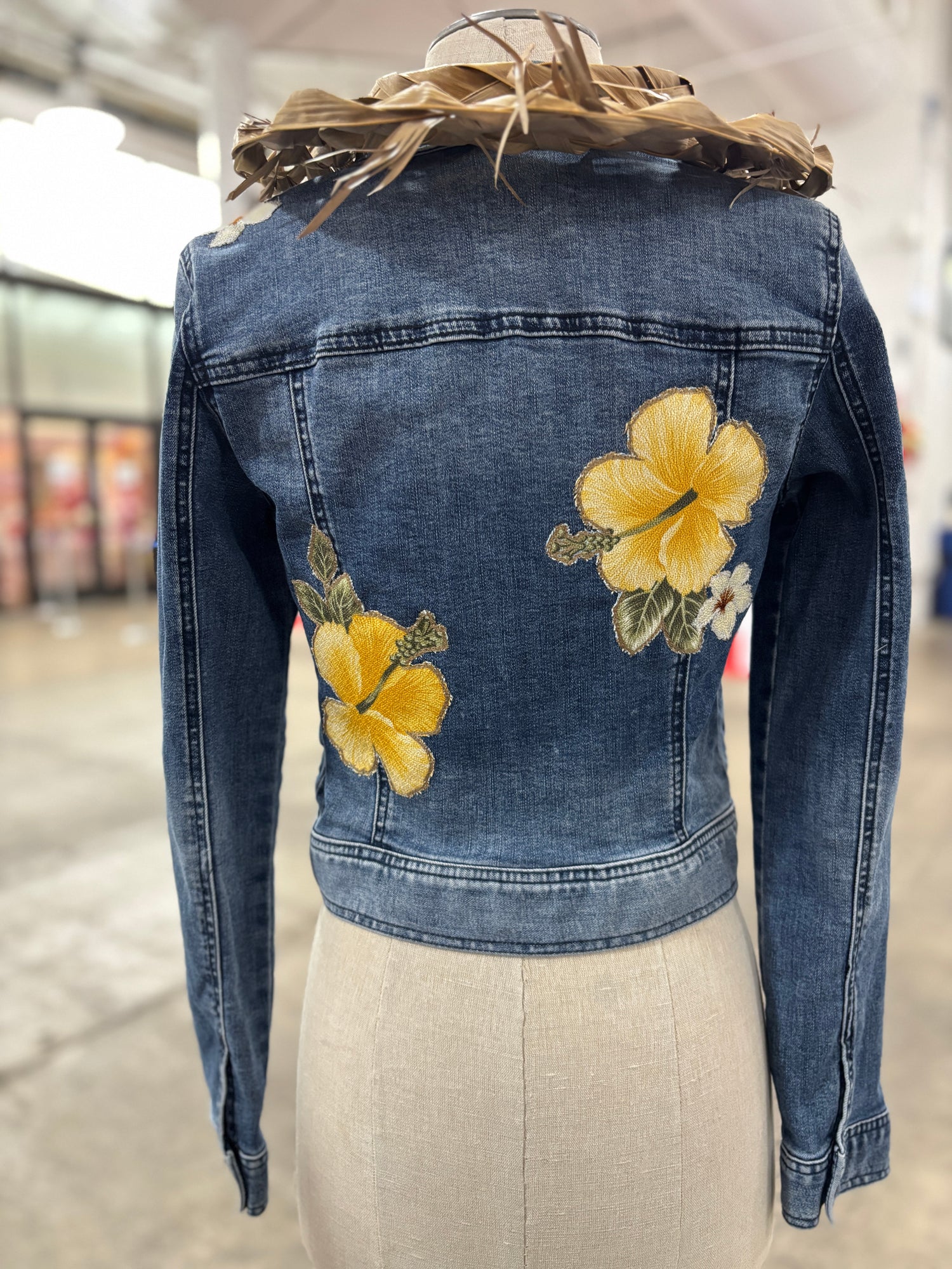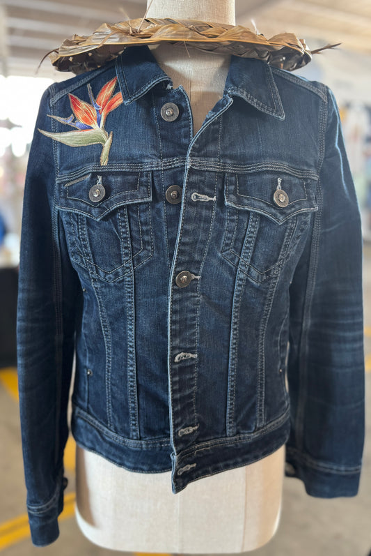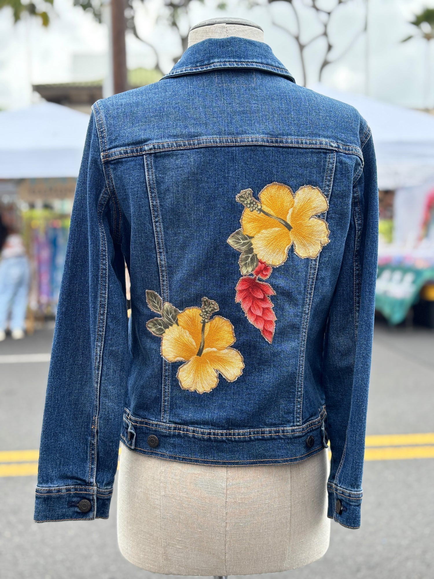 Vintage Tropical Appliqué On Upcycled Jean Jackets Manually Sewn Straight Stich Embroidery Handmade...
