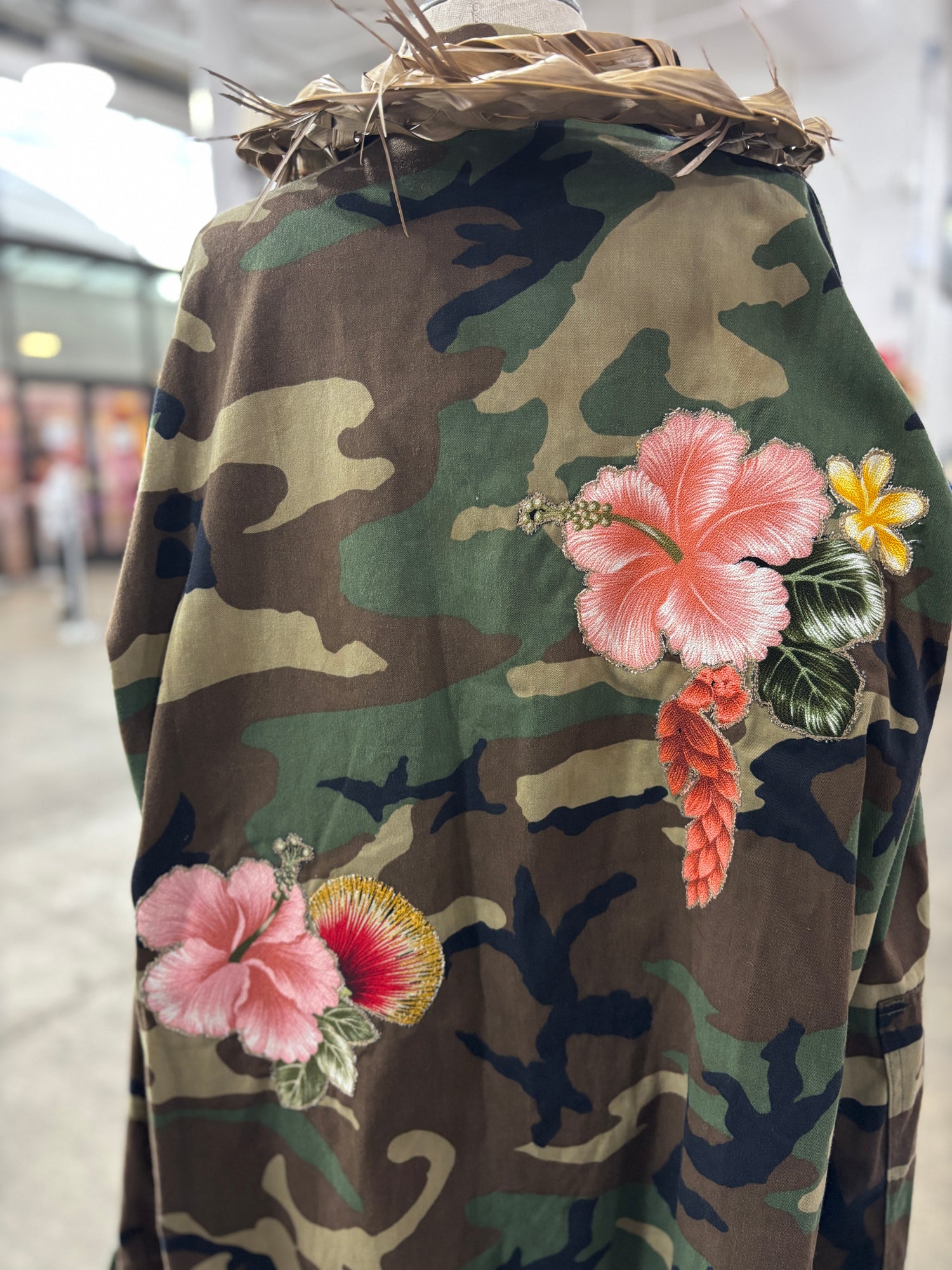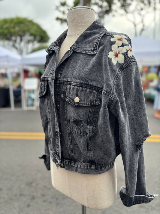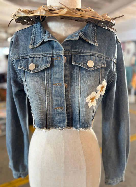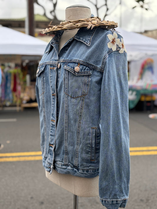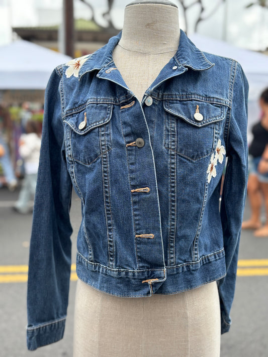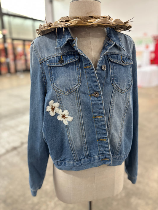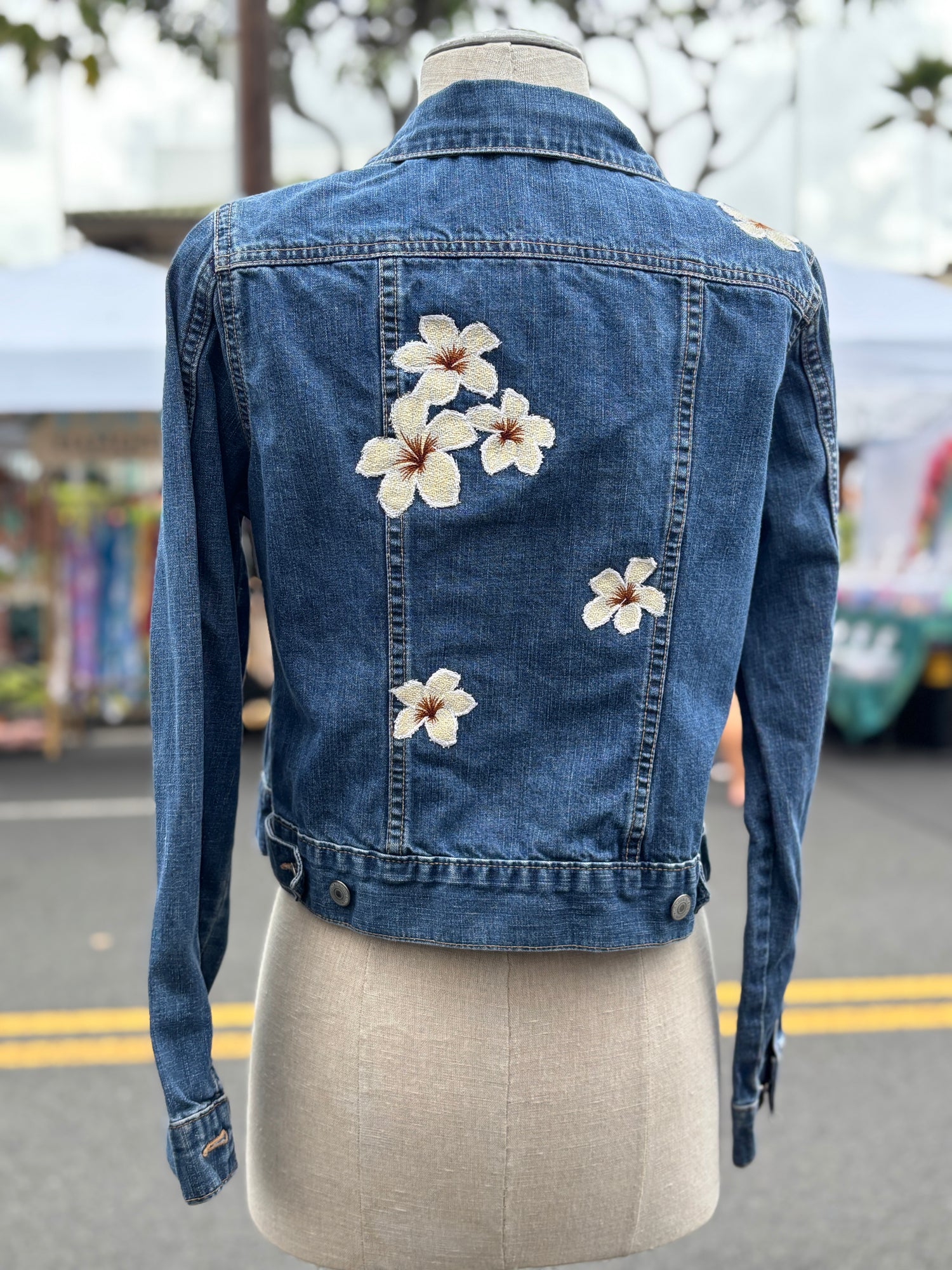 Vintage Tropical Appliqué On Upcycled Jean Jackets Manually Sewn Straight Stich Embroidery Handmade...